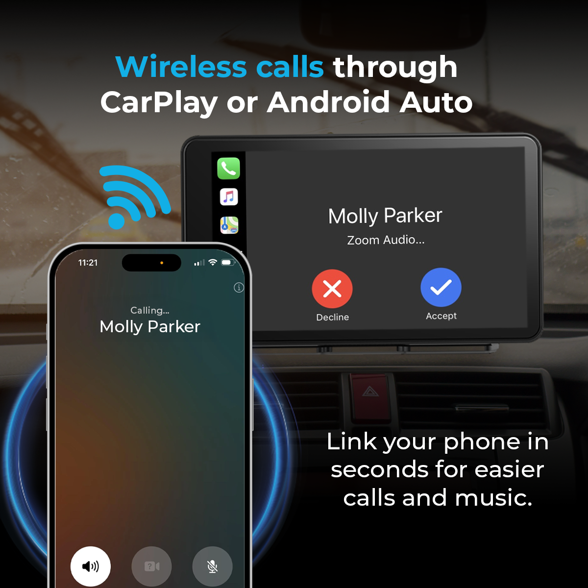 AutoSky APID-301 – brezžični Apple CarPlay in Android Auto, 7″ zaslon na dotik + vzvratna kamera