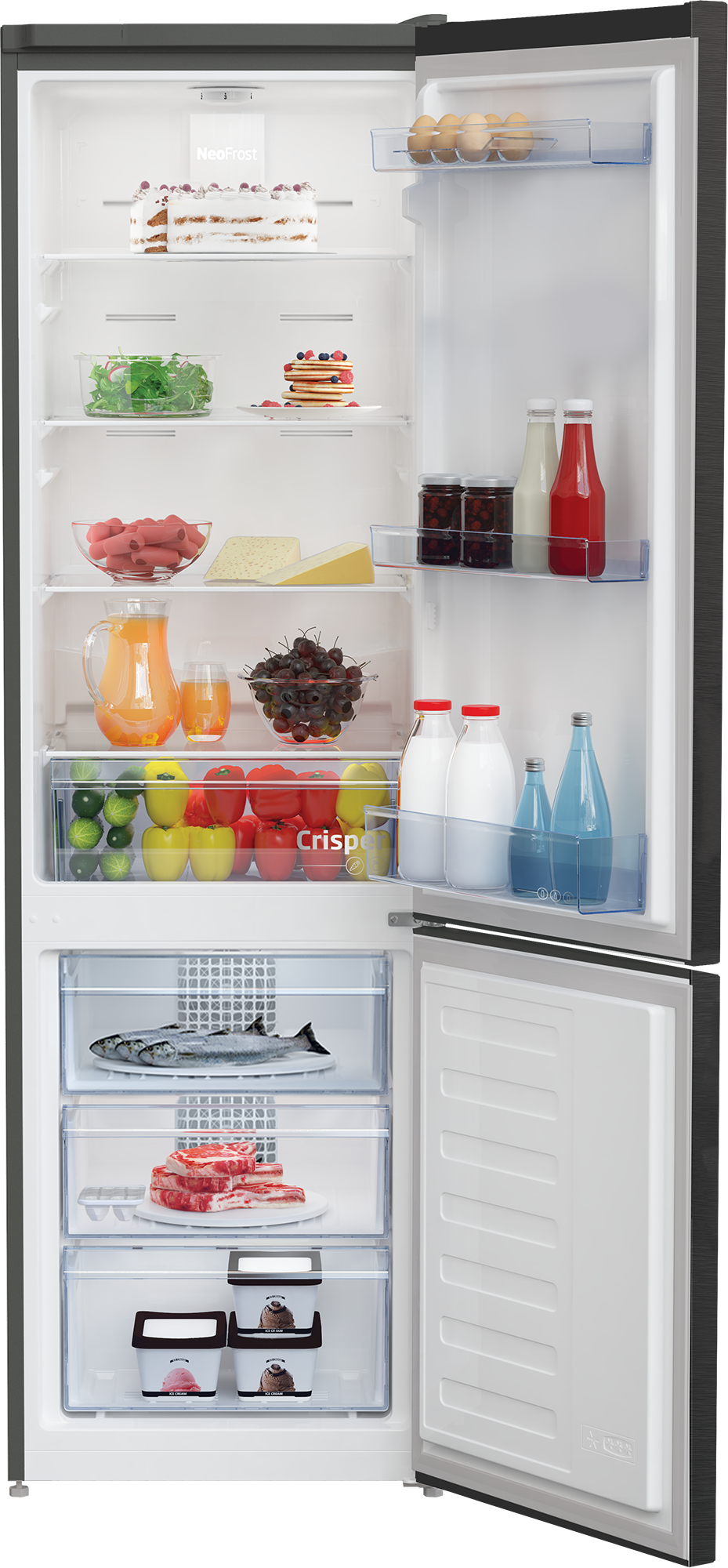 Beko kombinirani hladilnik RCNA305K40XBRN se ponaša z elegantnim dizajnom in naprednimi funkcijami, ki zagotavljajo optimalno shranjevanje živil. Tehnologija NeoFrost™ omogoča ločeno hlajenje v hladilniku in zamrzovalniku, kar preprečuje mešanje vonjav in ohranja svežino živil dlje časa. ProSmart™ invertni kompresor poskrbi za tišje delovanje in večjo energijsko učinkovitost. Hladilnik vključuje poseben predal za daljšo svežino sadja in zelenjave ter samodejno odmrzovanje za enostavno vzdrževanje. S skupno prostornino 305 litrov in LED osvetlitvijo je idealna izbira za sodobna gospodinjstva.