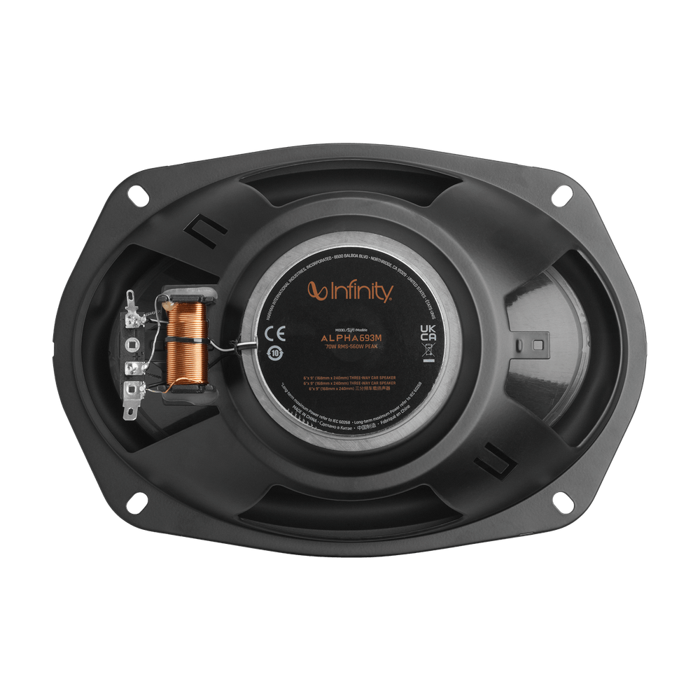 nfinity zvočniki serije Alpha imajo patentirano “Plus One” membrano, kar pomeni, da imajo 35% večjo površino membrane kot primerljivi zvočniki. Prednost tega je 2dB večja učinkovitost kot konkurenčni zvočniki. Posledično to v zvoku zagotavlja večjo občutljivost, izboljšano predvajanje nizkih tonov in večji glasbeni karakter. Tej zvočniki vam prinašajo INFINITY koncertno doživetje v vaše vozilo in to za presenetljivo ugodno ceno. Membrana nizkotonca iz polipropilena zagotavlja zvok poln karakterja in močnih nizkih tonov, visokotonski kupolast zvočnik pa dopolni zvok s kristalno čistimi visokimi toni.